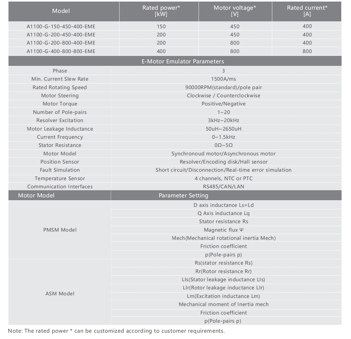 Supporting voltages from 100 to 800 V and power from 30 kW to 600 kW, it accurately emulates PMSM and asynchronous motors using advanced mathematical models.