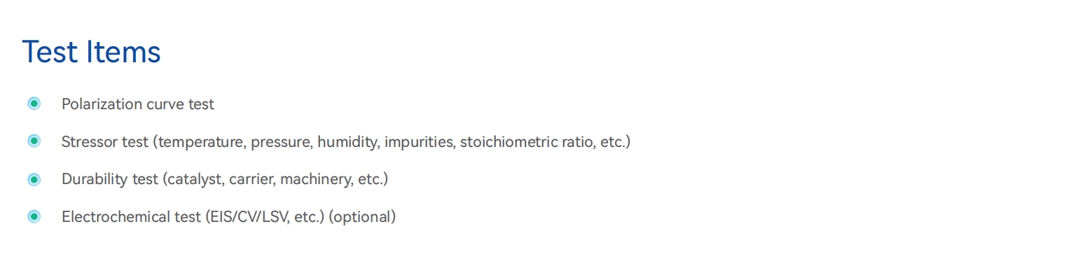 - Support sensitivity, performance (polarization curve, power curve), durability and reversal tolerance test