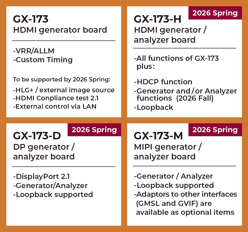 Adaptable Supports various formats such as HDMI, DP, MIPI, etc. by adding / swapping boards