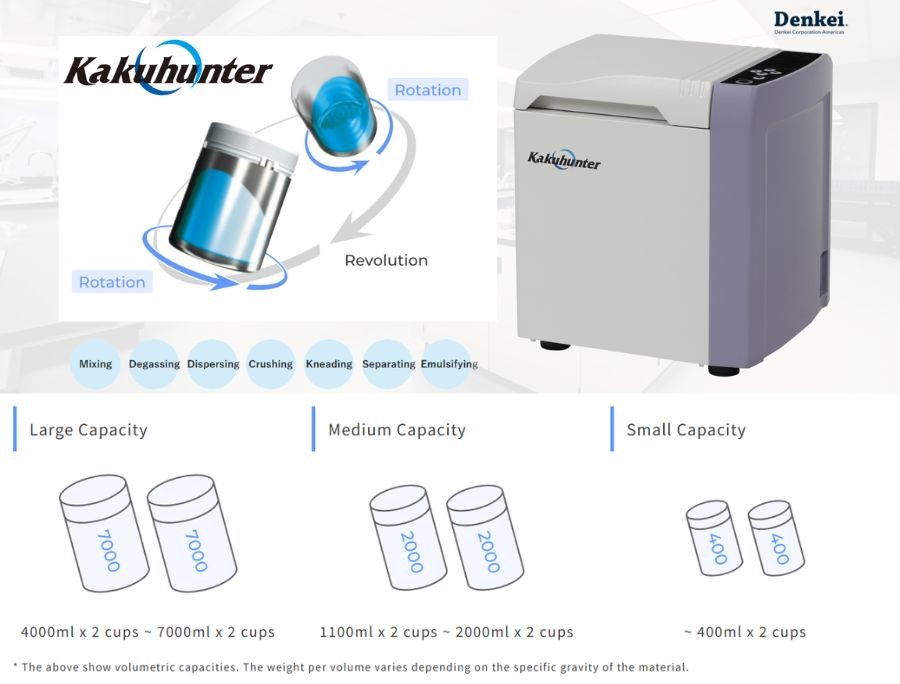 As an authorized distributor of Kakuhunter in North America, Denkei Corporation Americas delivers world-class planetary centrifugal mixers engineered by Shashin Kagaku Co., Ltd.